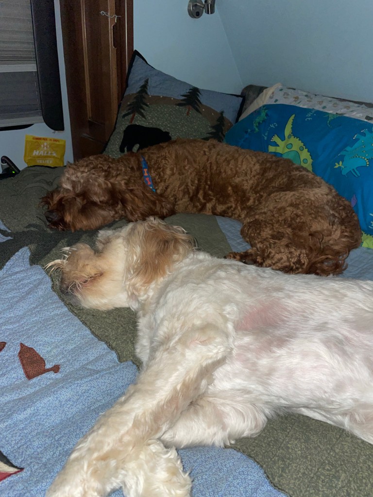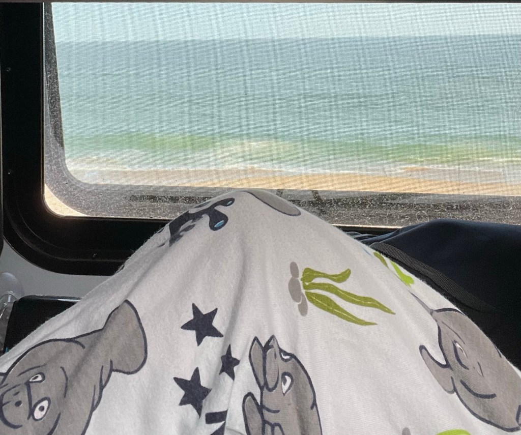 Four fantastic walks on the beach today! Sand in our shoes, pups happily exhausted! Life.Is.Good! Almost eleven thousand sandy steps by three pm. All the windows in the camper are open with cool ocean breezes coursing throughout! It just does not get any better than this!
