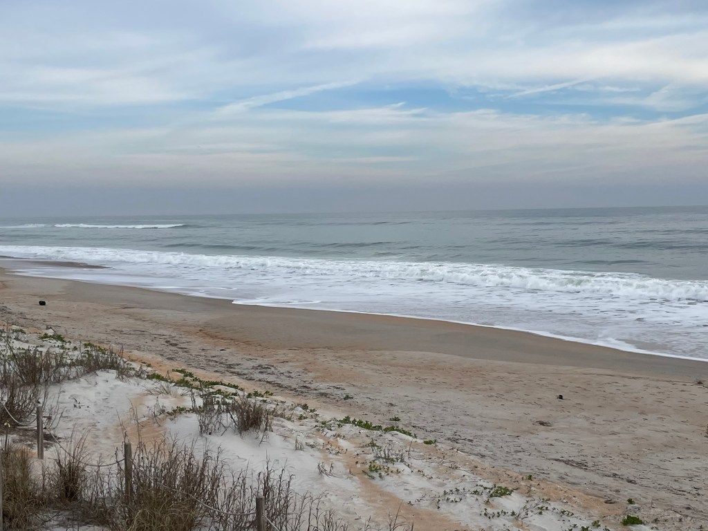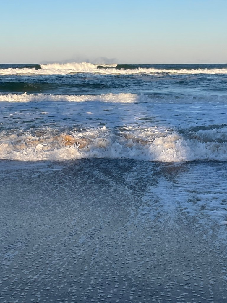 I took my usual leisurely morning stroll on the beach, dodging the rogue waves of the incoming tide… there is nothing like the sound of waves crashing ashore to calm the mind, and the scent of salt air to ease away any residual tension. I walk the shoreline morning and afternoon (2 miles total). It is heavenly here!