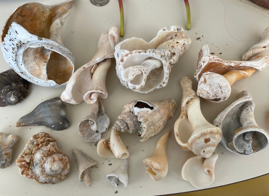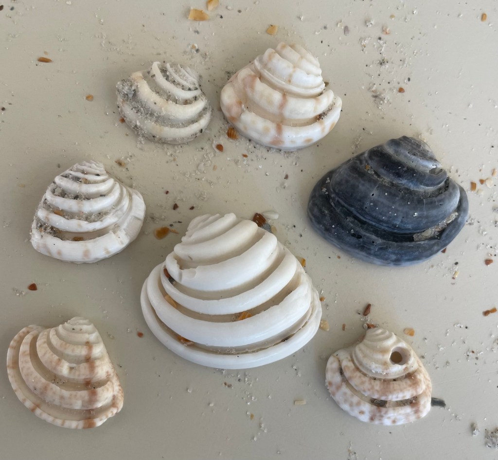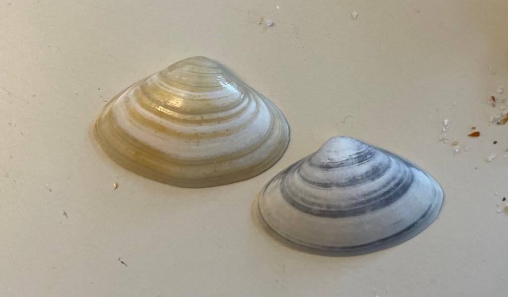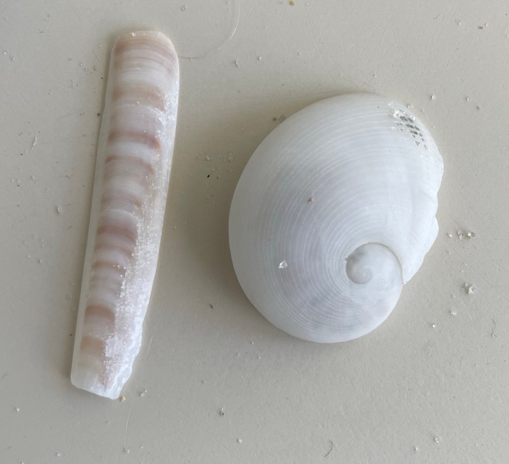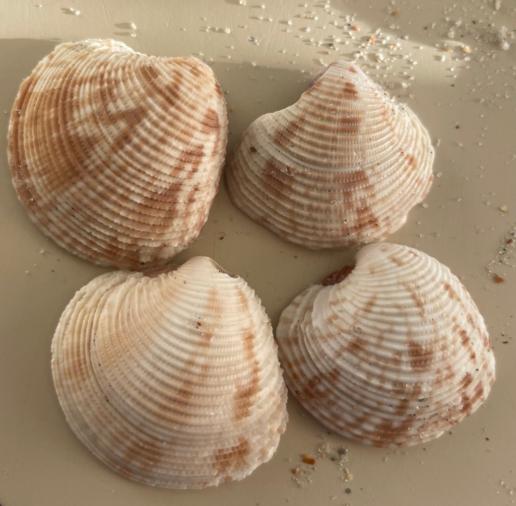 Interesting notes about these two shells. This type clam has radial ribs instead of the growth lines of other clams. And this type scallop has a totally flat top shell!