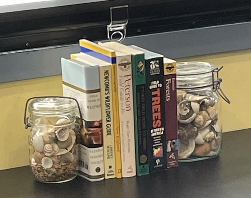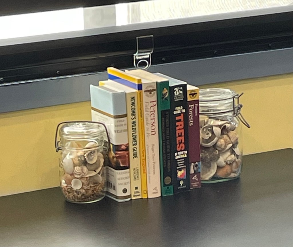 The nature guides on the table have jars of Florida seashells as bookends too!