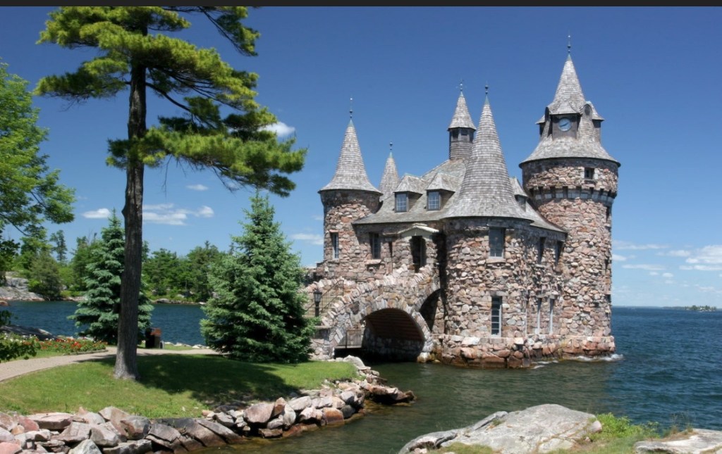 To give you an idea of what the thousand islands are – to qualify the land has to remain above water year round AND have at least ONE tree. Here are a couple photos of very different islands, from humble & tiny to epic castles: